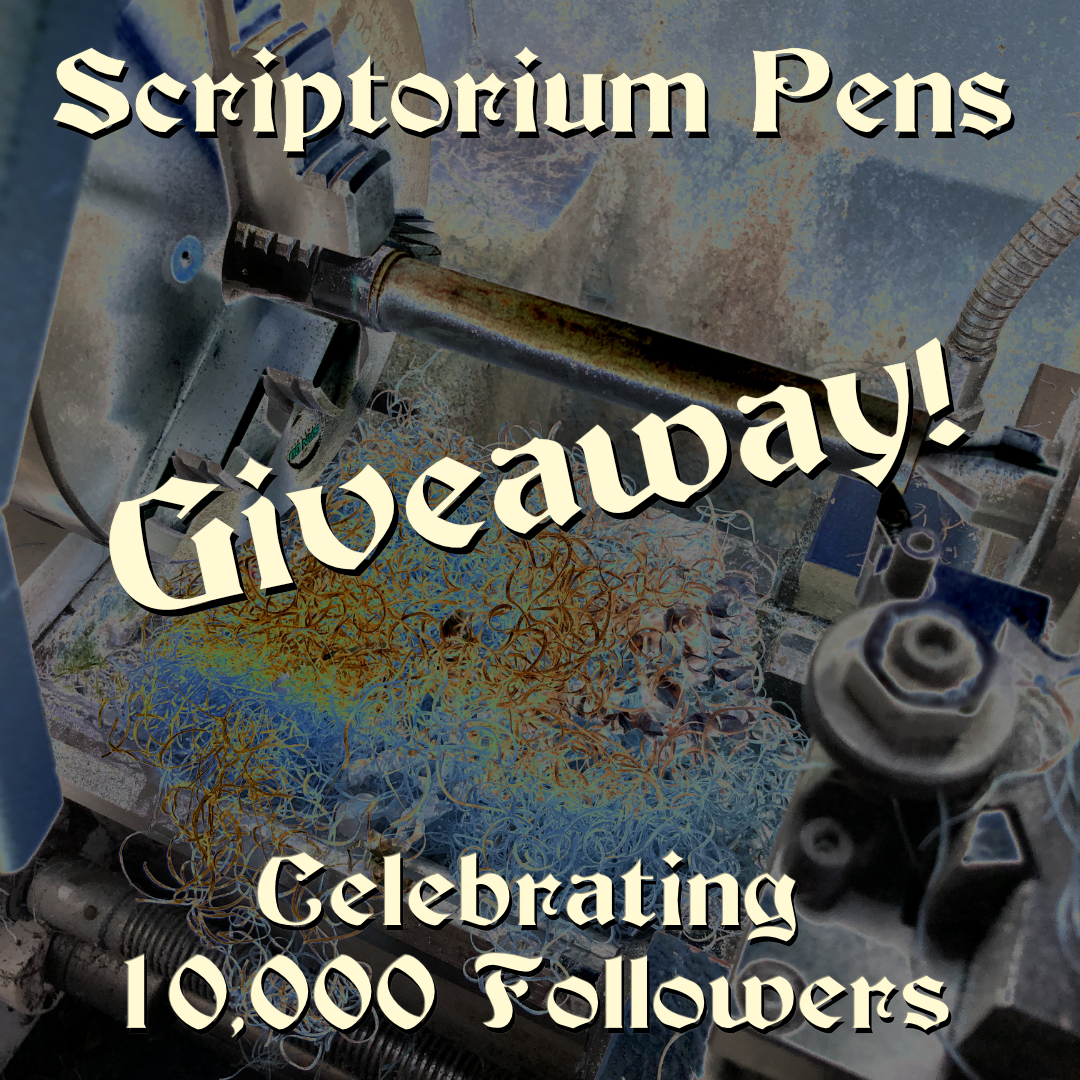 In thanks and appreciation, I am offering a Fountain Pen Giveaway with Free Worldwide Shipping. One lucky winner will receive a Free Base Model of any of my pens with a steel nib. The winner can customize it for free according to his/her wishes if it stays in the base model area. As I know that the winner might prefer more than a base model, upgrades to gold nibs, wood, cast clips, rollstops, etc. are possible, but require an upgrade fee – (See all the many customization options on my website at www.scriptoriumpens.com).  Mark Bacas, Nibgrinder, has offered to do a Free Custom Grind for the winner! And Mike Redburn, Silver Pen Parts, has offered to do a Free Silver or Brass Clip or Rollstop for the winner.