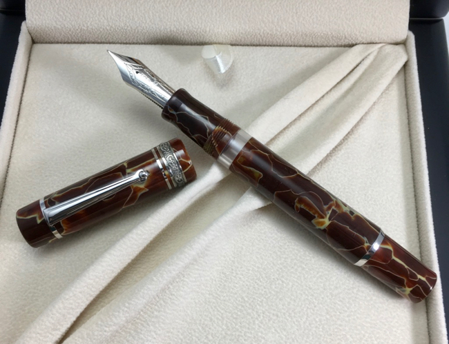 Lovingly Used Delta Chatterley Stantuffo Limited Edition in Marmo Incrinato Celluloid with Two 14k Two Oversized #8 Nibs! —