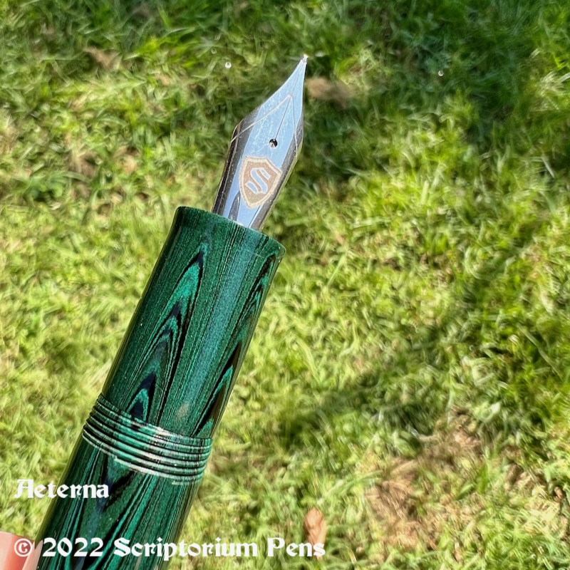 Published November 26, 2022 at 800 × 800 in Aeterna in Nikko Deep Green Ripple Ebonite with Exclamation Clip in Silver – Large