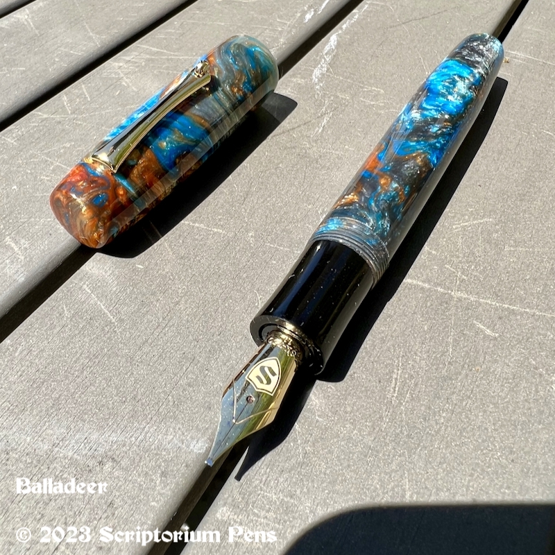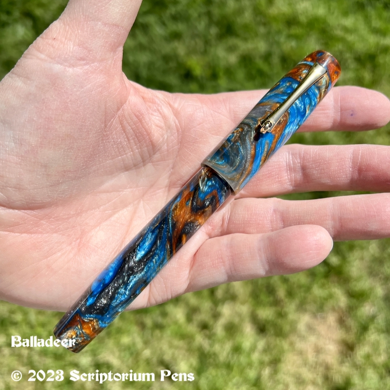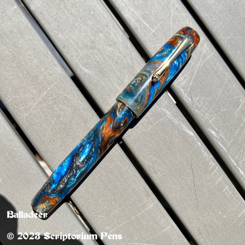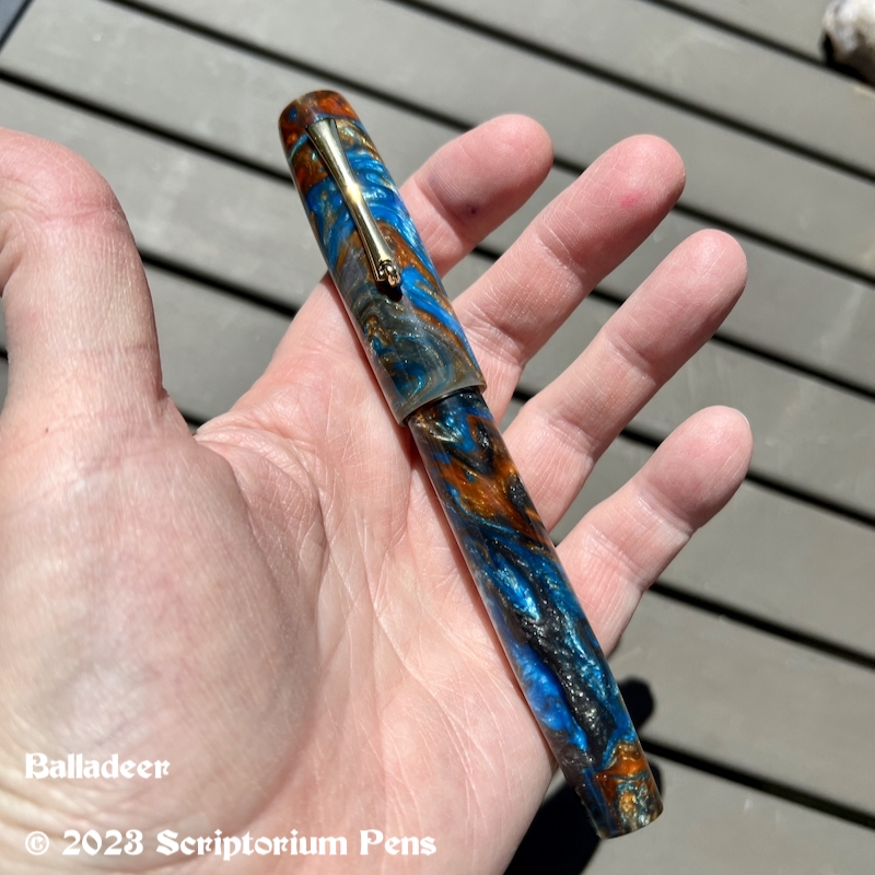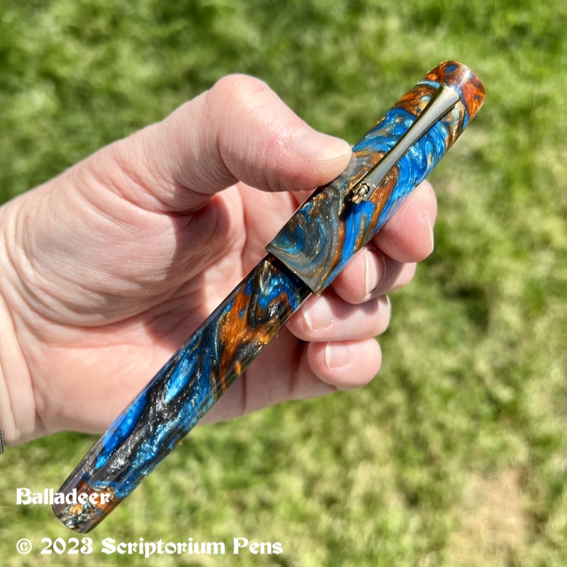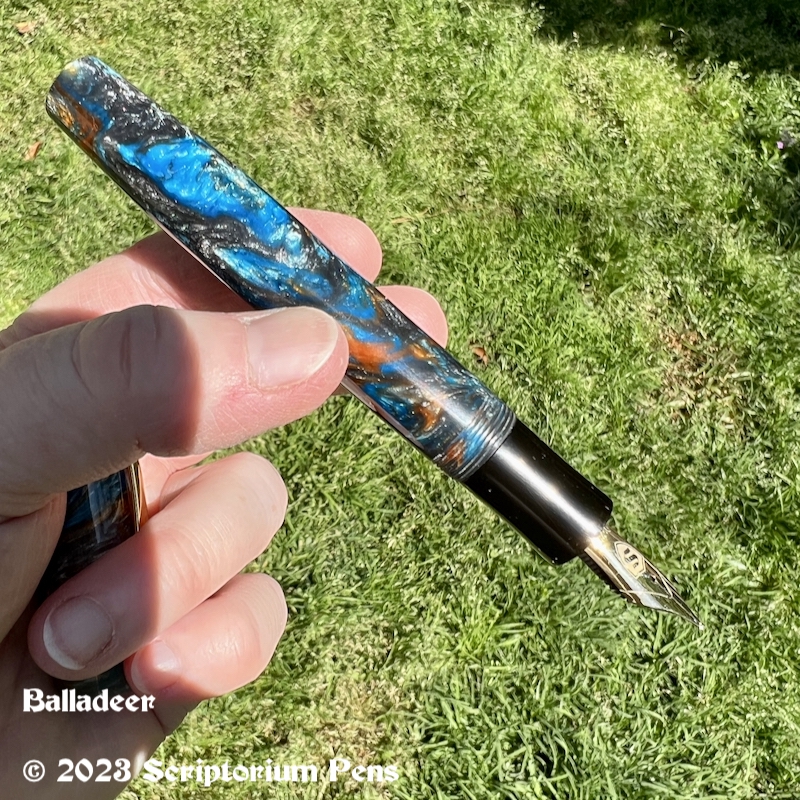 Balladeer in Mineral Sea and Black Ebonite – Large Mineral Sea material made by Muttblanks Share this: Click to share on Mastodon (Opens in new window) Mastodon Click to email a link to a friend (Opens in new window) Email Click to print (Opens in new window) Print Like Loading...