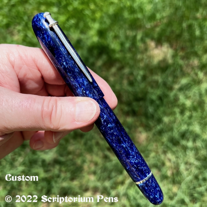 Custom LB5 Style in CS Blue Stardust – Large – 2 Published July 30, 2022 at 800 × 800 in Custom Design in Conway Stewart Blue Stardust with Silver Sword Clip – Large Share this: Click to share on Mastodon (Opens in new window) Mastodon Click to email a link to a friend (Opens in new window) Email Click to print (Opens in new window) Print Like Loading...