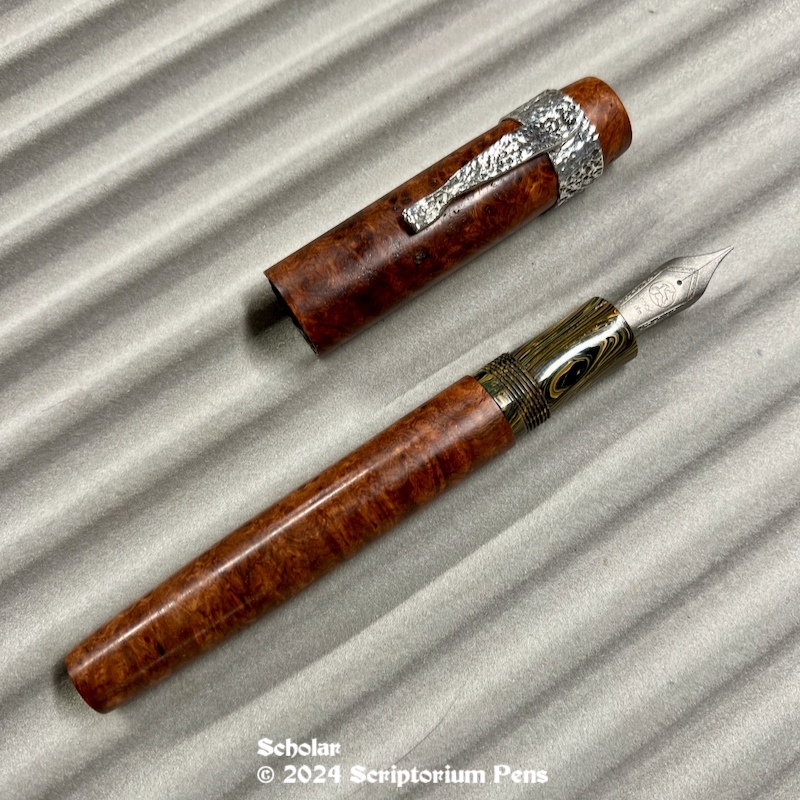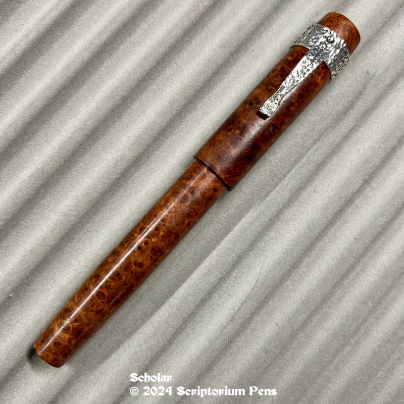 Scholar in Amboyna Burl, Exhibition Quality, with Hammered Silver Wraparound Clip – Large Share this: Click to share on Mastodon (Opens in new window) Mastodon Click to email a link to a friend (Opens in new window) Email Click to print (Opens in new window) Print Like Loading...